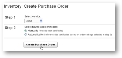 a. To add certificates manually, select the Manually option in Step 2. Then click the Create Purchase Order button.